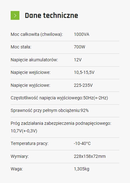 Електронний перетворювач IPS 1000 12 В використовується для живлення електричних пристроїв, які потребують змінної напруги 230 В від акумуляторів і автомобільних установок з постійною напругою 12 В. Ідеально підходить для транспортних засобів і місць, де пряме підключення до електромережі неможливе.