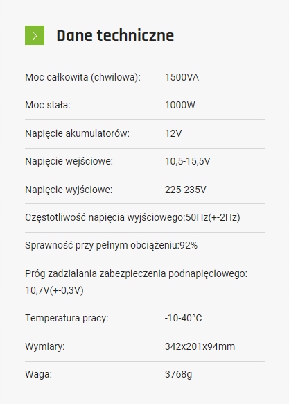 Електронний перетворювач SINUS PLUS 1500 12V використовується для живлення електричних пристроїв, що вимагають змінної напруги 230V від акумуляторів і автомобільних установок з постійною напругою 12V. Він ідеально підходить для транспортних засобів (наприклад, кемперів) і в місцях, де неможливе пряме підключення до електромережі.