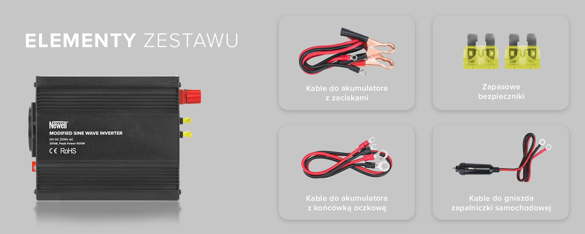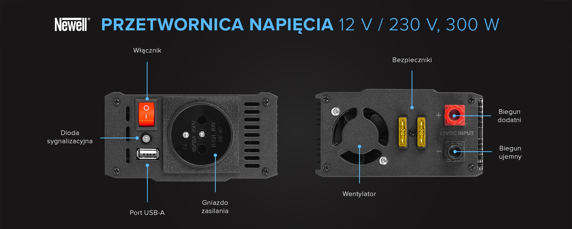 Доступ до електричних розеток під час подорожі може бути проблематичним. Обігрівач, чайник або ноутбук - це пристрої, які часто неможливо підключити до павербанка або розетки автомобільного прикурювача. Тоді на допомогу приходить перетворювач напруги Newell з модифікованою синусоїдою - 12 В / 230 В, 300 Вт. Вам не обов'язково купувати нові електронні пристрої, щоб використовувати їх у подорожі. Інвертор дозволить живити обладнання, яке раніше було сумісним лише з традиційними електричними розетками, від акумулятора чи автомобільного прикурювача.