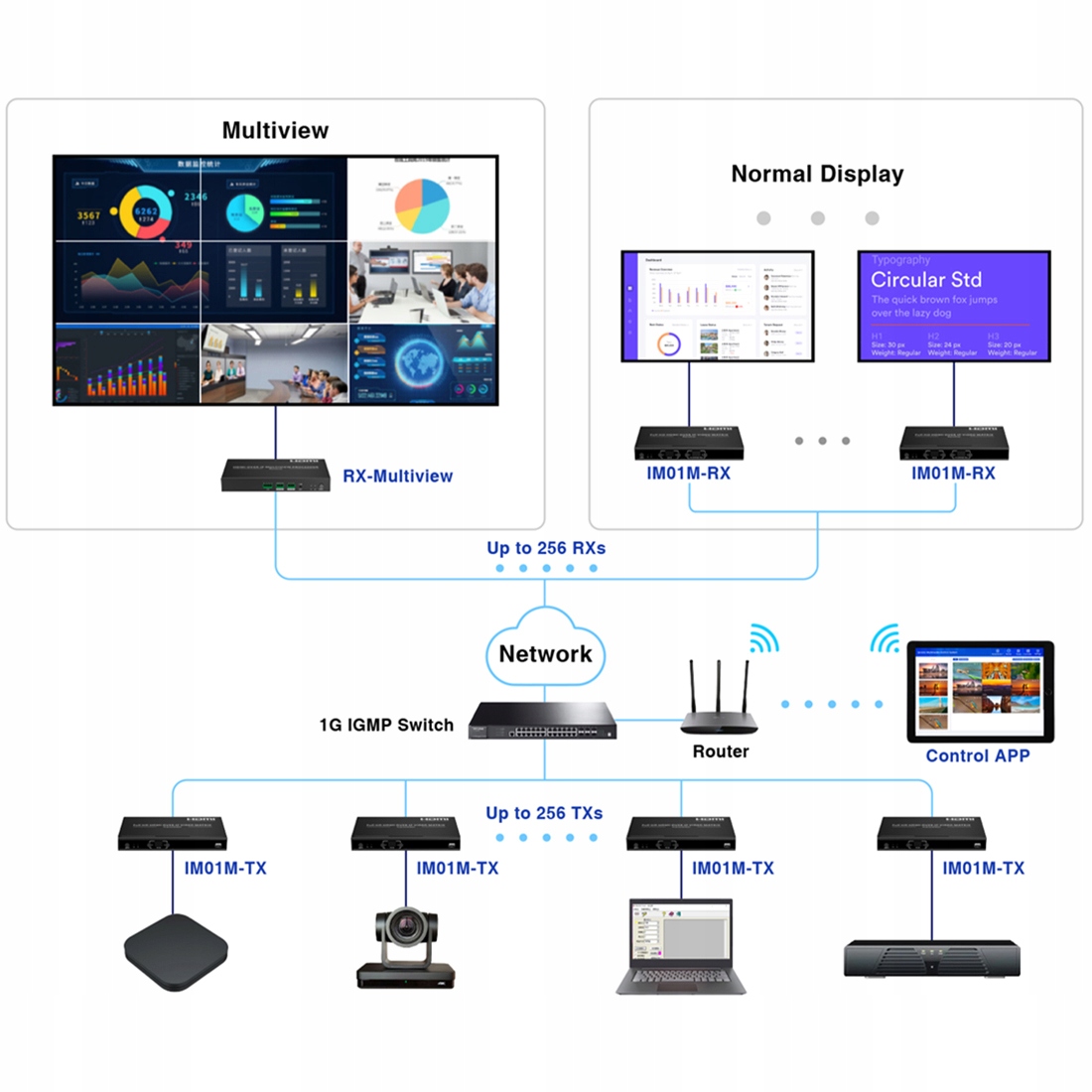 Матричний HDMI 2x2 може підключати 2 джерела HD сигнал з 2 HD дисплеями, додатково пристрій має вихід toslink або стереонавушники. Matrix дозволяє легко перемикатися або розділяти два HDMI-пристрої до двох HDMI-сумісних моніторів або проекторів. Вихідні порти можуть реалізувати незалежний аудіовихід через стереогарнітуру. Пристрій ідеально підходить для управління та розподілу ЦОД інформація, презентації в залі засідань, шкільне середовище та навчання.