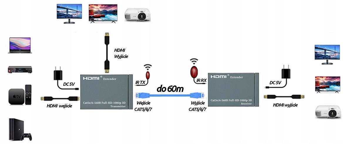 Перетворювач HDMI в локальну мережу дозволяє підключати сигнал високої чіткості (HD) до ресивера (телевізора, монітора) з роз’ємом HDMI по кабелю типу «кручена пара» категорії 5/6 і вище на відстані до 60 м. У набір входять передавач TX і приймач RX, які необхідно підключити безпосередньо за допомогою кабелю LAN. Кабелі LAN та кабелі HDMI різної довжини доступні в інших пропозиціях нашого магазину.