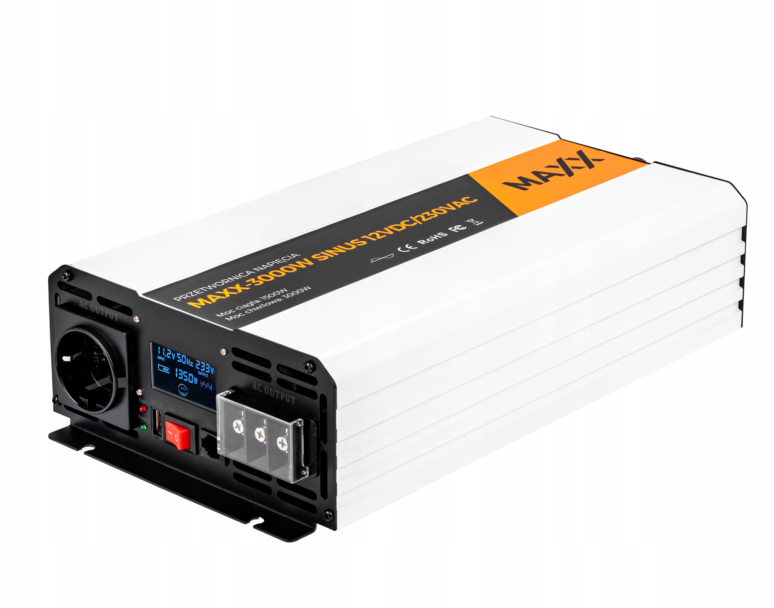 Перетворювач напруги Maxx 3000W - це компактне рішення, призначене для перетворення постійного струму 12vdc для рівня 230vac рівня змінного струму. Завдяки його невеликому розміру та надійній конструкції, продукт гарантує стабільність та чисту напругу синуса. Це ідеальне рішення для аварійних застосувань, що забезпечує надійне джерело живлення в кризових ситуаціях.