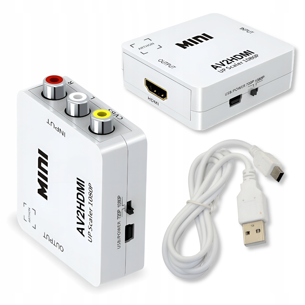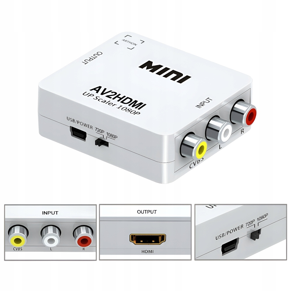перетворювач зображення та звуку з аналогових розетків av ( 3x Chinch cvbs l/p ) для цифрового гнізда hdmi . Перетворювач забезпечує інтерполяцію роздільної здатності 720p та 1080p , які можна вибрати за допомогою комутатора та адаптованого до вашого приймача HD. Перетворювач чудово поєднується з усіма передавачами, такими як VHS та DVD -гравці, домашні кінотеатри та декодери, які не мають HDMI гнізд . Конвертер відділу Plug & Play .