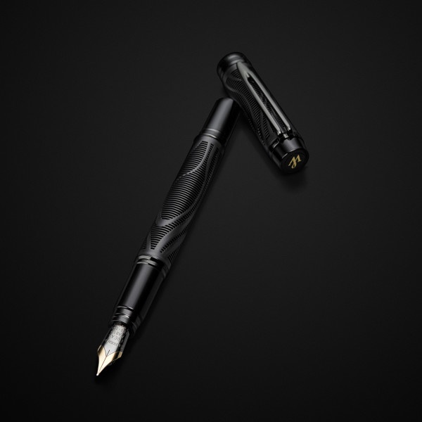Чорна обробка з PVD-покриттям і вигадливий візерунок хвилі є ідеальним прикладом повністю чорної монохроматичної естетики 18-каратного золота з оновленим двокольоровим дизайном із золота та рутенію ідеально доповнює оригінальний вигляд. такі особливості, як культовий затиск із двома зубцями на кришці та петелька "W". Кожне перо ретельно збирається вручну у Франції, демонструючи галльське знання Waterman.