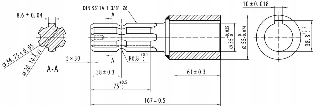 Переведення карданного вала на клин внутрішній 35 клин 10мм