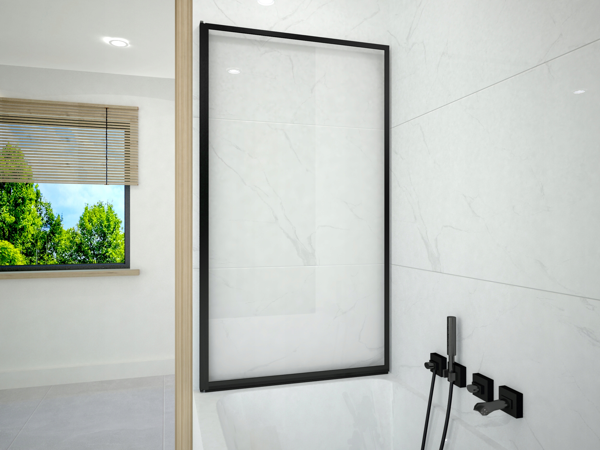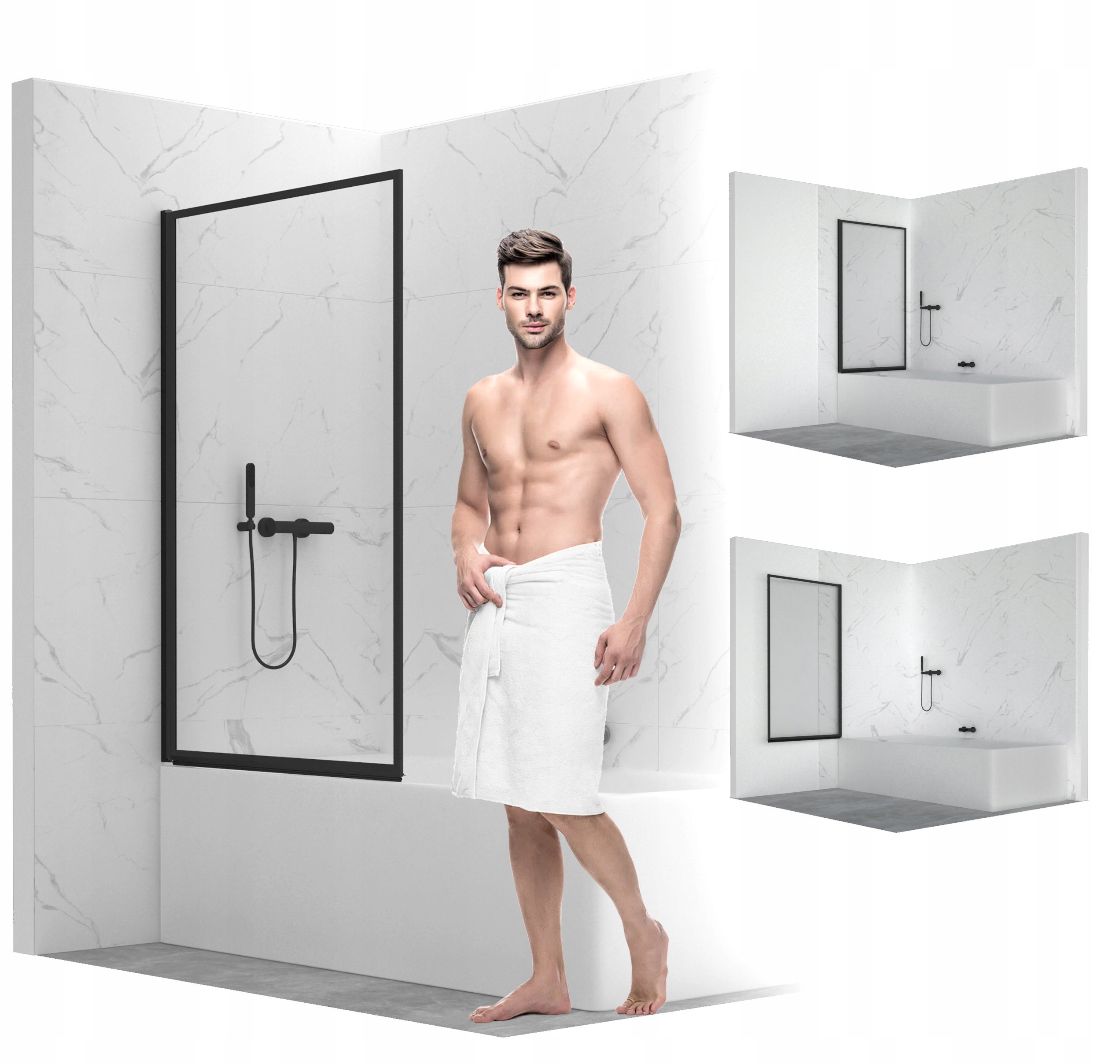 ШИРМА НА ВАННУ, 1-СТУЛКА, ЧОРНА РАМКА, СКЛАДНА НА 180 ГРАДУСІВ - 70 СМ