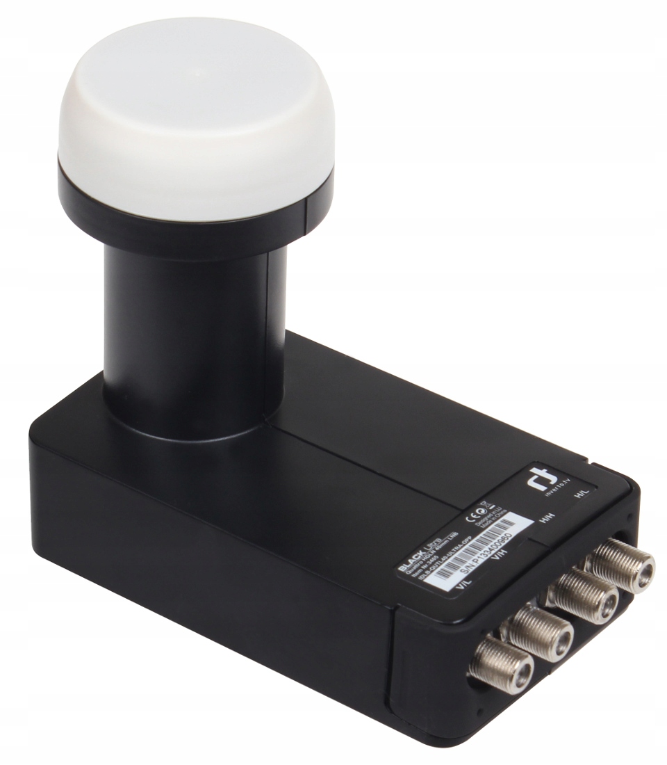 ОПИС. Завдяки інноваційній конструкції генератора та високоякісним компонентам, використаним у його виробництві, цей перетворювач забезпечує більш високе посилення сигналу, ніж раніше, з найнижчим коефіцієнтом шуму та низьким рівнем фазового шуму. Поєднання спеціалізованих елементів, чудового розділення та вдосконалених фільтрів забезпечує ще краще усунення небажаних перешкод сигналу та є великим кроком вперед у прийомі сигналу порівняно зі стандартними перетворювачами LNB. Конвертер quattro дозволяє приймати сигнал з одного супутника та розповсюджувати його через мультиперемикач на багато тюнерів приставки.