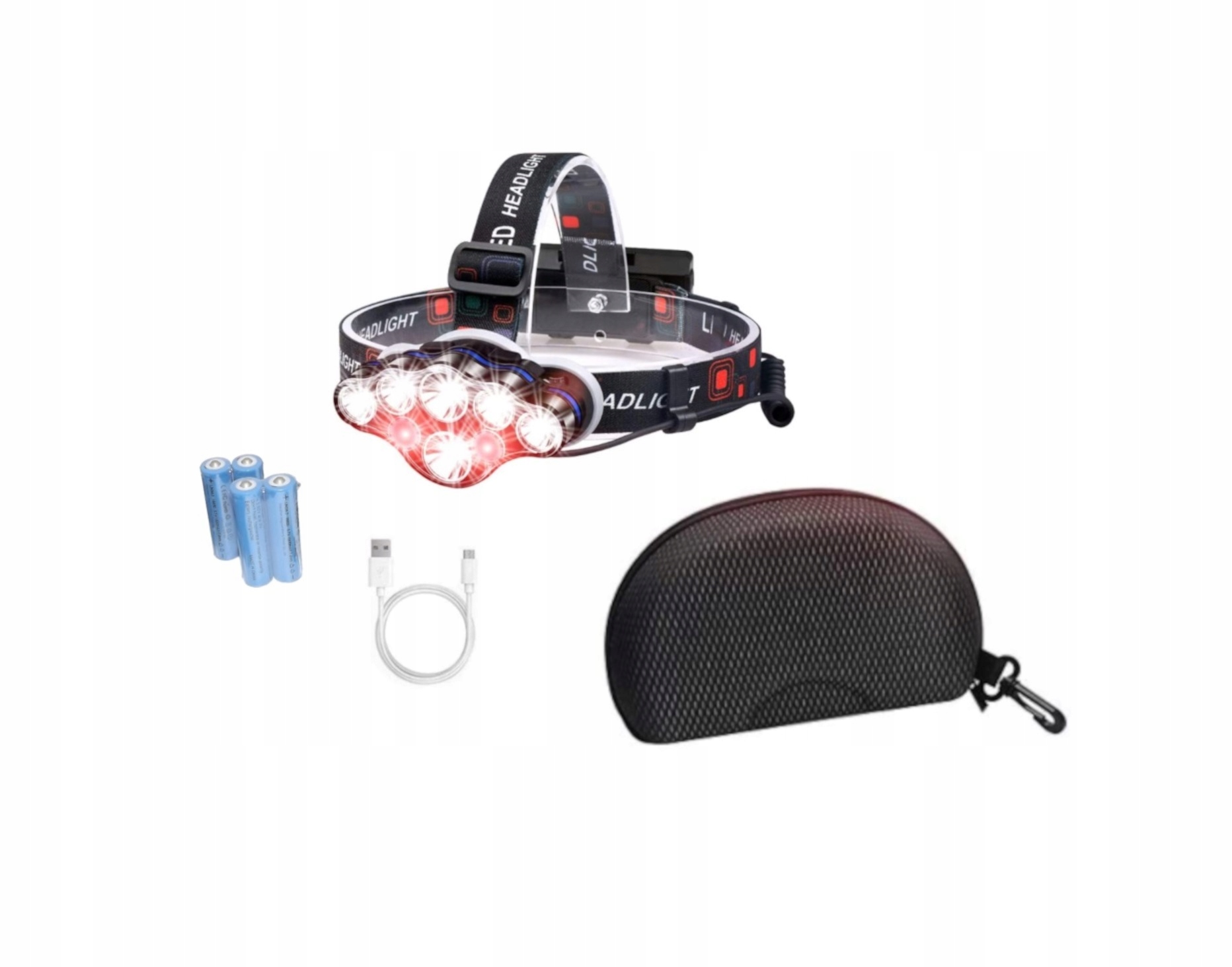 - Налобний ліхтар - 4 акумуляторні батареї - USB-кабель - Футляр (1 комплект).