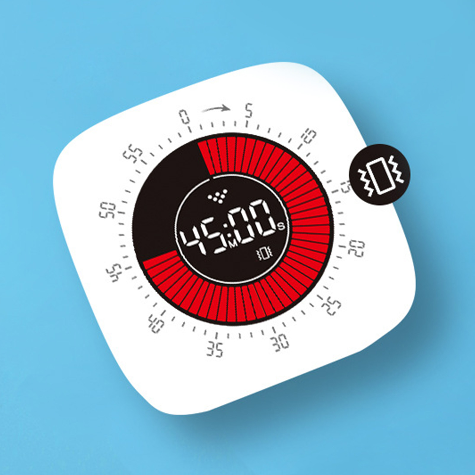 1, ШВИДКЕ НАЛАШТУВАННЯ: цифровому візуальному таймеру потрібен лише ролик для виконання всіх операцій, простий у використанні, значення CW збільшується, значення CCW зменшується 2, ВІЗУАЛЬНА ПАНЕЛЬ ПРОГРЕСУ: час, що залишився для 60-хвилинний цифровий таймер зворотного відліку видно з першого погляду. На панелі прогресу є 60 смужок, кожна смужка відповідає 1 хвилині, загалом 60 хвилин. 3. 3 РІВНІ РЕГУЛЮВАННЯ ЯСКРАВОСТІ: тихий годинник з таймером підтримує три рівні яскравості: темніший, помірний і яскравіший для адаптації до світлого та темного середовища. 4. 4 ПІДСУМНІ РЕЖИМИ: Настільний годинник дозволяє змінювати режим підказок відповідно до ваших потреб, висока гучність, низька гучність, безшумне миготливе світло та вібрація 5. НІЧНЕ СВІТЛО: більше не хвилюйтеся про відсутність світла цифрового візуального зображення таймер, 60 секунд автоматично вимикає екран, натисніть будь-яку клавішу, щоб відновити дисплей 6, ЗАРЯДЖАННЯ ТИПУ C: підтримка цифрового візуального таймера зворотного відліку заряджання ТИПУ C, без заміни батареї, захист навколишнього середовища та економія енергії, велика ємність батареї 200 мАг