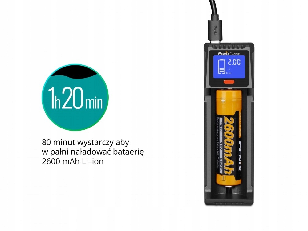 Fenix ARE-D1 — це одноканальний USB-мікропроцесорний зарядний пристрій із функцією Power Bank, завдяки якому ми можемо правильно, швидко та безпечно заряджати різні типи Li-ion, Ni-MH та Ni-Cd акумуляторів.