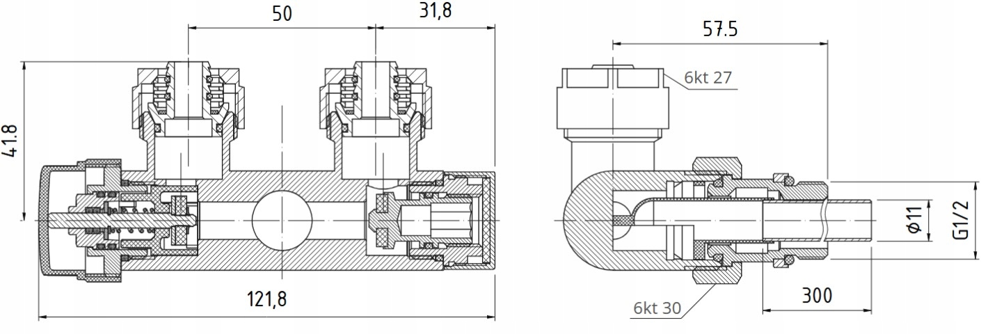 ІНТЕГРОВАНИЙ КУТОВИЙ ТЕРМОСТАТИЧНИЙ КОМПЛЕКТ ІЗ ЗАНУРЮВАЛЬНОЮ ТРУБКОЮ З ПОПЕРЕДНІМ НАЛАШТУВАННЯМ ДЛЯ ПІДКЛЮЧЕННЯ РАДІАТОРА ВАННОЇ З НИЖНІМ ПІДКЛЮЧЕННЯМ З КОНЕКТОРАМИ ДЛЯ БАГАТОШАРОВИХ ТРУБ 16X2.