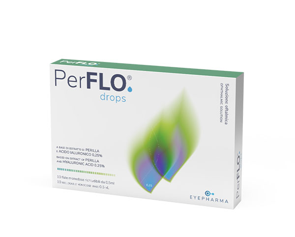 Perflo Drops® - це інноваційні штучні сльози, очні краплі на основі 0,25% гіалуронової кислоти з додаванням 0,1% екстракту Perilla frutescens. Окремі інгредієнти препарату мають зволожуючу, змащувальну, захисну та регенеруючу дію, а також мають протиалергічні та протизапальні властивості.