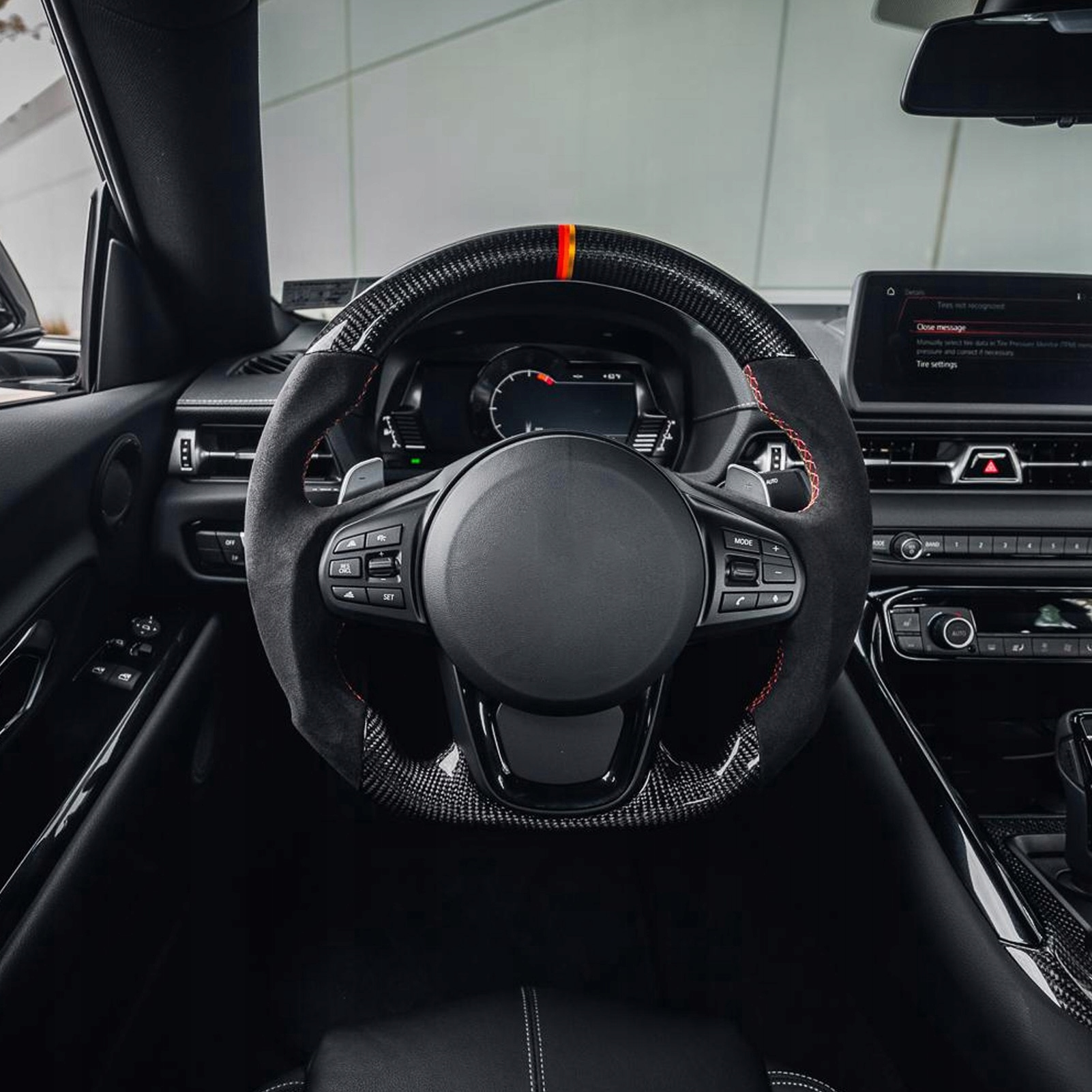 1. Ергономічне та розкішне рульове колесо, виготовлене з горілки з вуглецю, що нерозумно відповідає A90 2020+ GR, значно покращує зовнішній вигляд внутрішніх приміщень автомобіля.