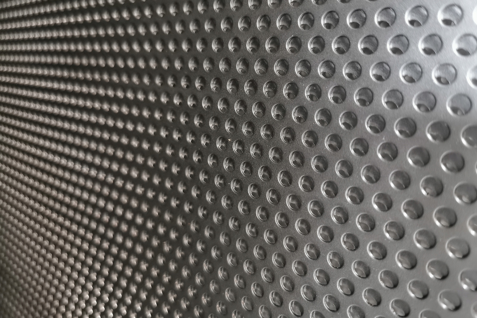 Перфорований сталевий лист (необроблений) із круглими отворами в шаховому порядку.