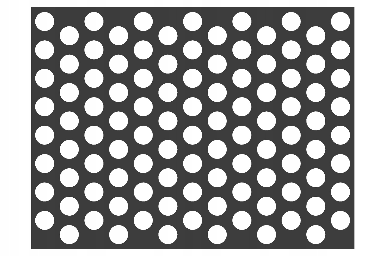 Перфорований сталевий лист (необроблений) з круглими отворами в прохідному розташуванні.