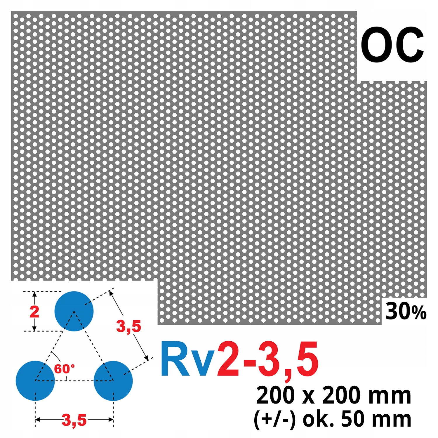 Сітка перфорована ОЦИНКОВАНА 2 мм РОЗРІВ 1,5 мм 200 x 200 мм Rv 2-3,5