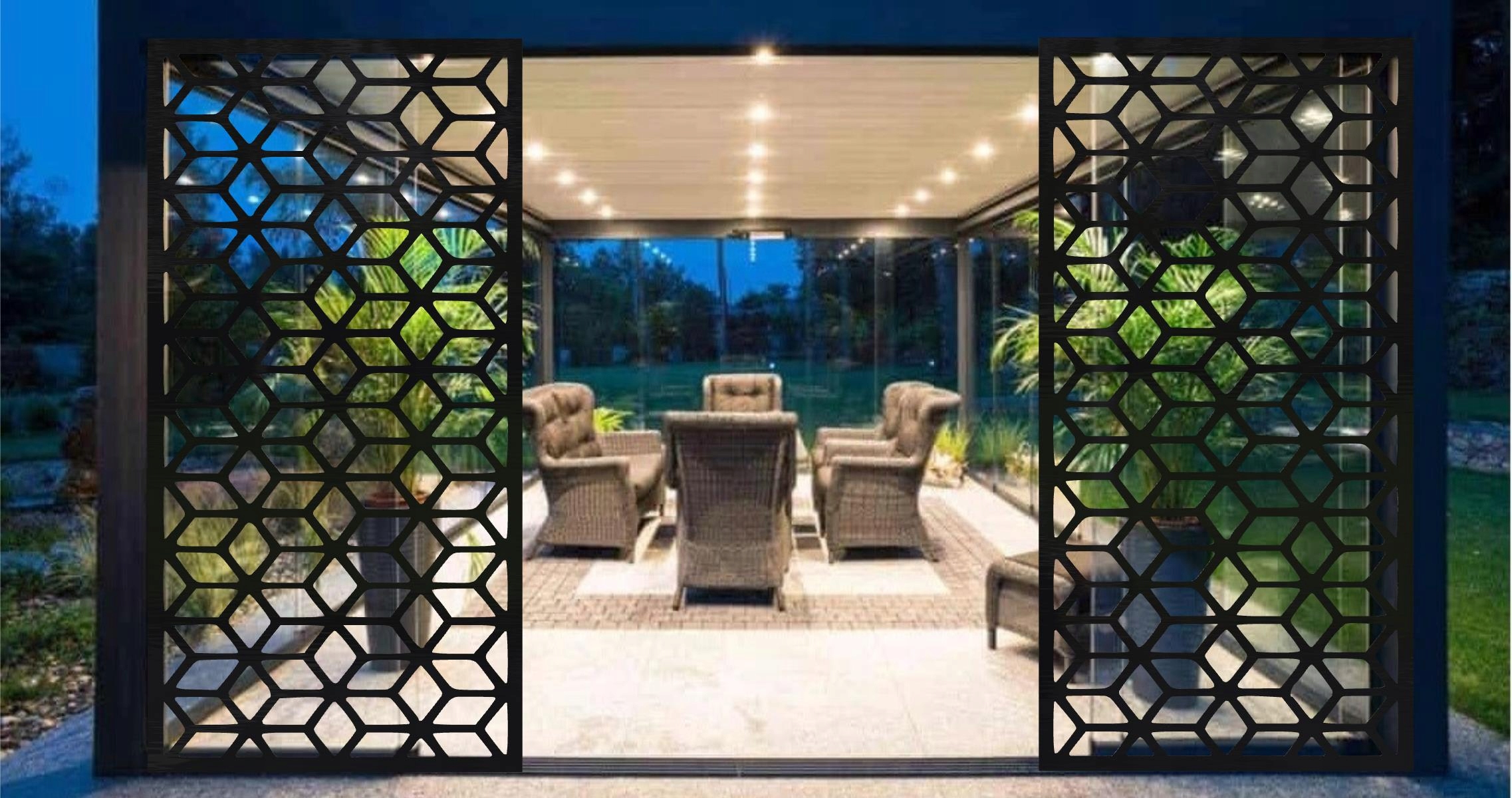 Панелі вирізаються за допомогою лазерної техніки, що дозволяє отримати надзвичайно рівні й дуже точні краї. Панелі легко монтуються і можуть використовуватися в якості прольоту огорожі, хвіртки, воріт, балюстради, оздоблення стелі, внутрішнього оздоблення стін і елементів альтанок, садових дахів, пергол і конструкцій терас. У кожному елементі ми можемо вирізати готові отвори для заклепок або кріпильних кронштейнів відповідно до потреб замовника.