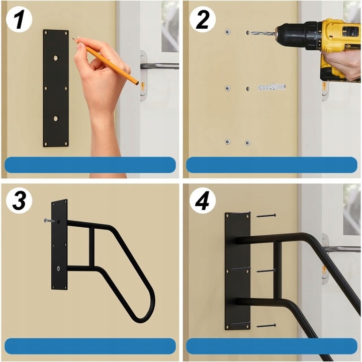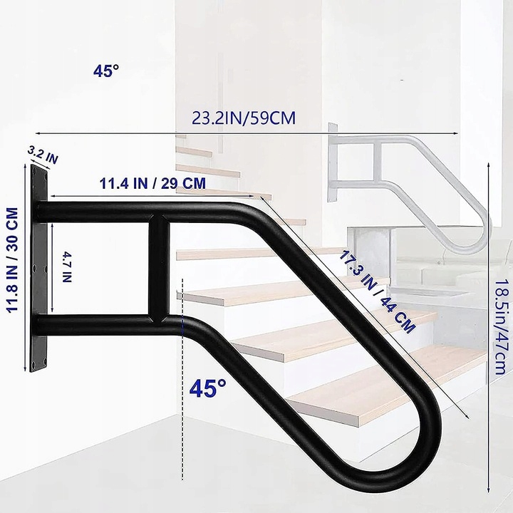 🔧🔧 Надійна стабільна та проста установка:металеве поруччя сходів оснащено 6 гвинтами, 6 розширювальними трубками, підходить для різні види стін, в тому числі дерев'яні стіни, плиткові стіни та бетонні стіни. Просто підготуйте просту ручну дриль, щоб легко завершити встановлення, спочатку визначте висоту та положення встановлення, просвердліть отвори в місці розмітки, вставте гвинти та, нарешті, завершіть затягування.
