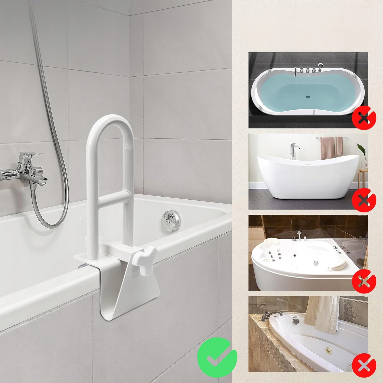 ✔️- Забезпечує підтримку для людей, які входять і виходять з ванни, забезпечуючи безпеку, і особливо підходить для людей похилого віку та післяопераційних пацієнтів.
