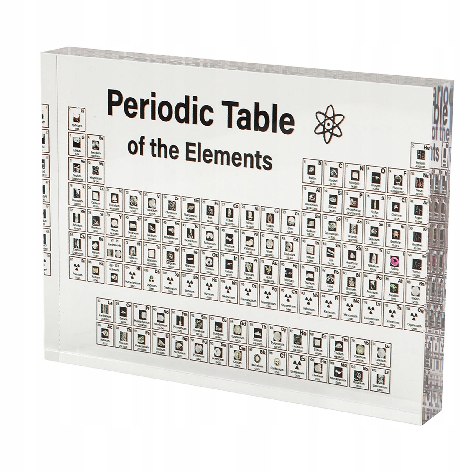 Функція: 1. Прозорий акрил: Періодична система виготовлена з дуже міцного акрилу з прозорим, прозорим зовнішнім виглядом, що забезпечує оптимальну видимість.