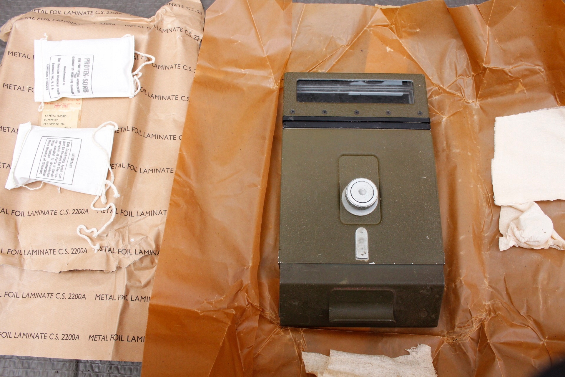 Колір: оливкові розміри: 28 х 16,5 см (довжина x) 2552g Матеріал: корпус: металеві лінзи: żłoscłserskop, тип M6, використовується в американських бронетанкових танках із Другої світової війни, таких як Шерман та Стюарт. Цей перископ був встановлений шляхом вставки пристрою в кронштейн і кріплення на губі. Потім ручку ножа підтягували, щоб захистити її на місці. Якщо під час стрілянини був розбитий один із двох скляних лінз, об'єктив можна швидко видалити та замінити, повернувши перевернуті ручки з обох боків перископа, найближчого до пошкодженої лінзи, що сповільнило б об'єктив для заміни. У кожній пізній моделі Шермана було 12 м6 перископів. Шість встановлених у різних місцях, один у шапці, що обертається водія та нерухома перед ним. Пілот мав однакову композицію, лише з іншого боку він використовував люк або постійний перископ, щоб націлитись на кулемет з лука. Навантажувач мав обертовий перископ у своєму положенні, а командир мав його в люк. На стінах вежі було два повних перископів M6, один біля здобичі, а другий - у командира. Власник маски водія мав чотири повні M6 Periscops.