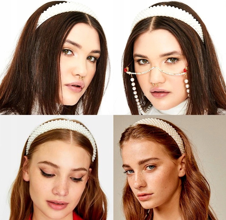 Перламутрово-білий, модний, бохо, перли, широка, жорстка резинка жіноча