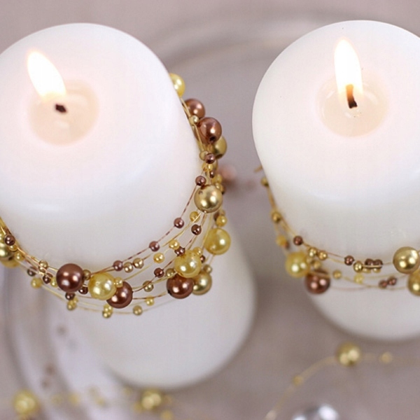 Золоті перлини, прикріплені до нитки для створення гірлянди. Завдяки їм ви створите гарну прикрасу для будь-якого свята. Прекрасне доповнення до декору залу компанії, весільного залу, домашнього інтер'єру, свічок, весільних букетів, столу і т.д. При необхідності гірлянду можна обрізати на потрібну довжину, перлини не рухаються і не осипаються. p>