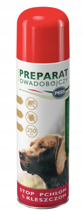 Препарат ефективно бореться з блохами, кліщами та алергенами в оточенні собаки та на ній. Препарат також знищить інших повзаючих комах, таких як таргани, мурахи, оси, клопи, павуки, кліщі, воші, гниди, личинки тощо в житлових кімнатах і кімнатах, призначених для тварин. Являє собою спиртовий розчин біологічно активних речовин: Тетраметрин і Перметрин. Це вдосконалений варіант інсектициду MUSZKA. Більш сильний препарат (зелений) доступний на іншому моєму аукціоні