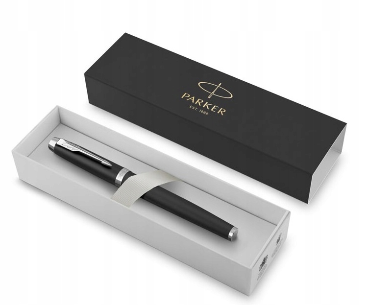 Елегантний, полірований і ґрунтований дизайн поєднується з сучасною, звуженою формою, матовим чорним лаковим покриттям, доповненим хромованими відблисками та фірмовою кліпсою зі стрілкою PARKER, міцним пером із нержавіючої сталі середнього розміру, що забезпечує надійність і особистий досвід письма, зручна та ергономічна форма у поєднанні з найвищим класом виготовлення від PARKER, що нагадує про багату спадщину бренду, чудовий вибір для студентів та професійні