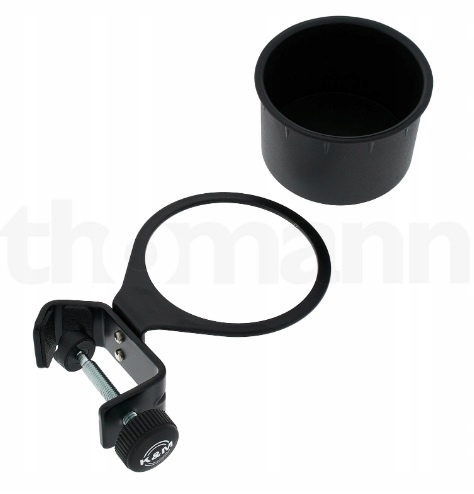 Практичний і універсальний тримач для напоїв із комбінації сталі та пластику, підходить для контейнерів діаметром до 70 мм. Тримач можна закріпити на штативі діаметром 11 - 30 мм за допомогою регульованого затискача