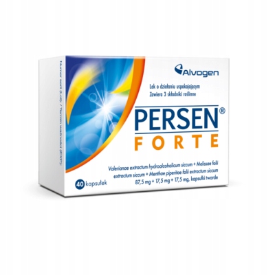 Персен форте – традиційний фітопрепарат, призначений для застосування за певними показаннями, що виникають лише внаслідок його тривалого застосування. Персен форте містить екстракти кореня валеріани, листя меліси і листя м'яти, які традиційно використовуються в седативних препаратах.