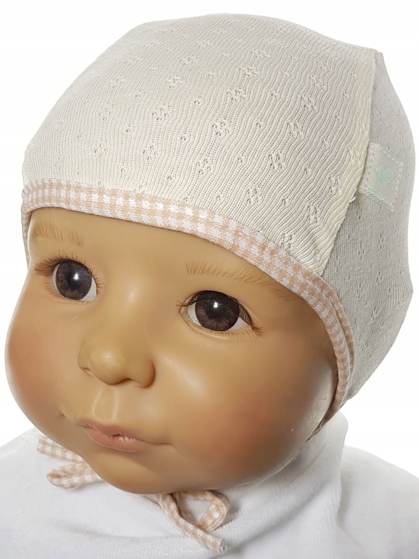 ПЕРША ДИТЯЧА ШАПКА ЗВ'ЯЗАНА БАВОВНЯНА ШАПКА 0-3MC 15KOL