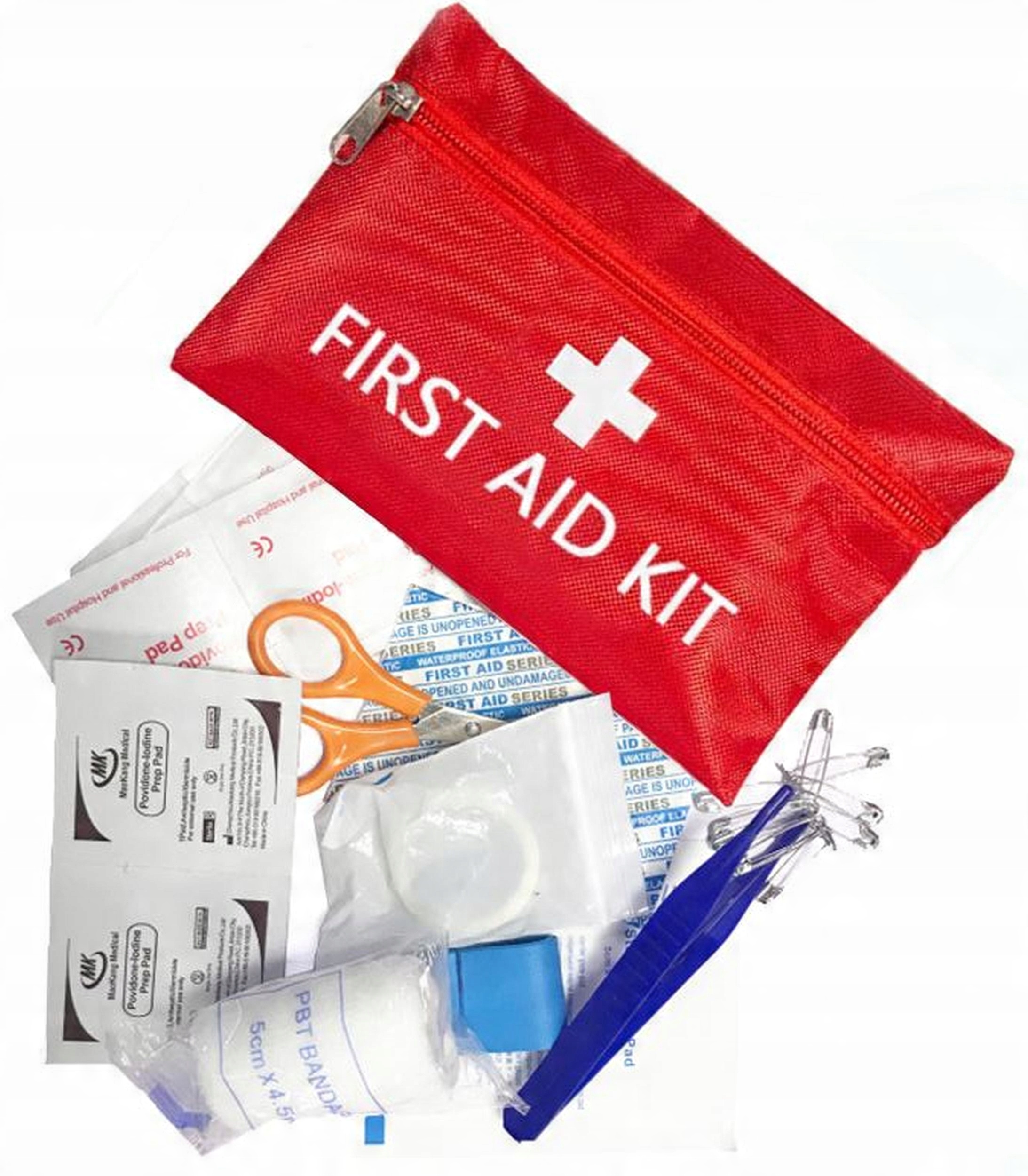 1 x червоний нейлоновий мішечок, позначений білим хрестиком і застібається на блискавку - ВОДОСТІЙКИЙ
