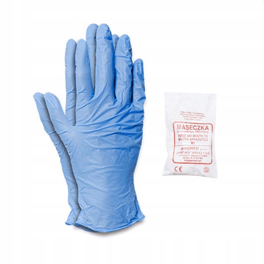 Латексні рукавички забезпечують гігієну та захист під час надання допомоги, а маска дозволяє безпечно проводити серцево-легеневу реанімацію.