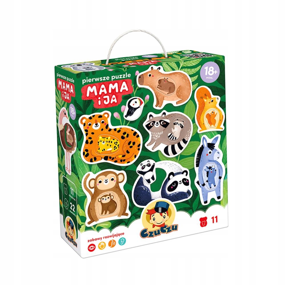 У наборі аж 11 пазлів із двох частин із чарівними, теплими та жартівливими ілюстраціями малюків та їхніх мам. Укладання - це виклик, а перші успіхи надихають на подальшу гру, що дозволяє приємно розвивати дрібну моторику, сприйнятливість, логічне мислення та уяву.