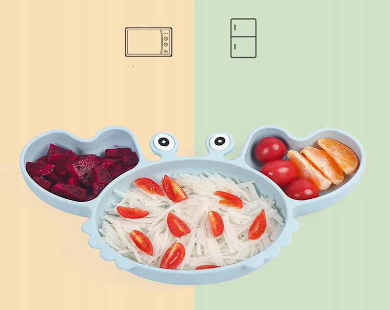 ✅ Тарілка КРАБ: практична тарілка у формі краба, яка полегшує роботу ваша дитина їсть самостійно. Він має підняті краї, щоб їжа не розливалася на стіл.
