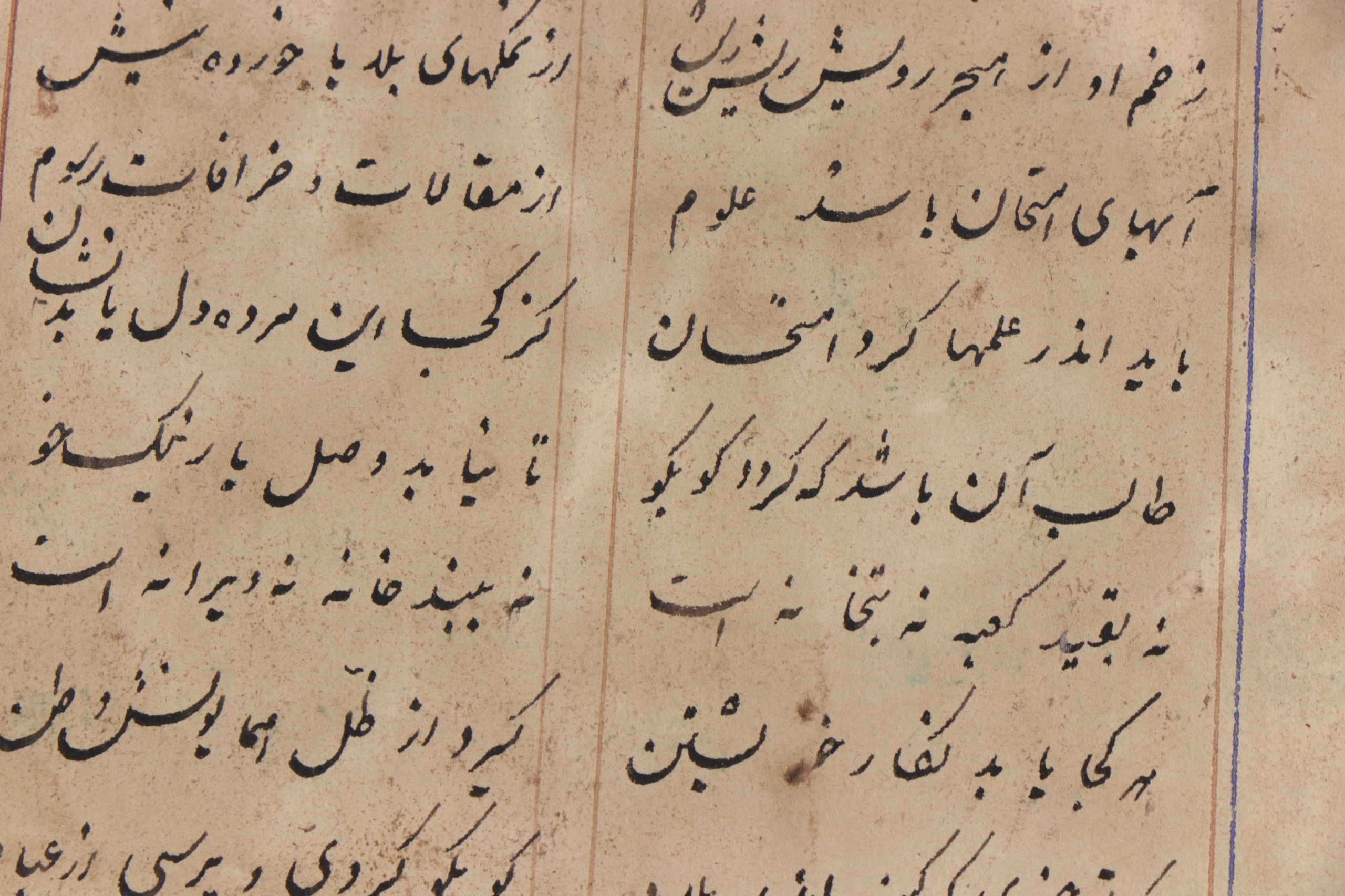 Перська мініатюра з поетичного рукопису Саʿді з Ширазу (Гулістан або Бустан). Персія (Іран), приблизно 1780–1820 рр., ранній Каджарський період. Мініатюра виконана: туш, акварель, туш і позолота на папері ручної роботи.