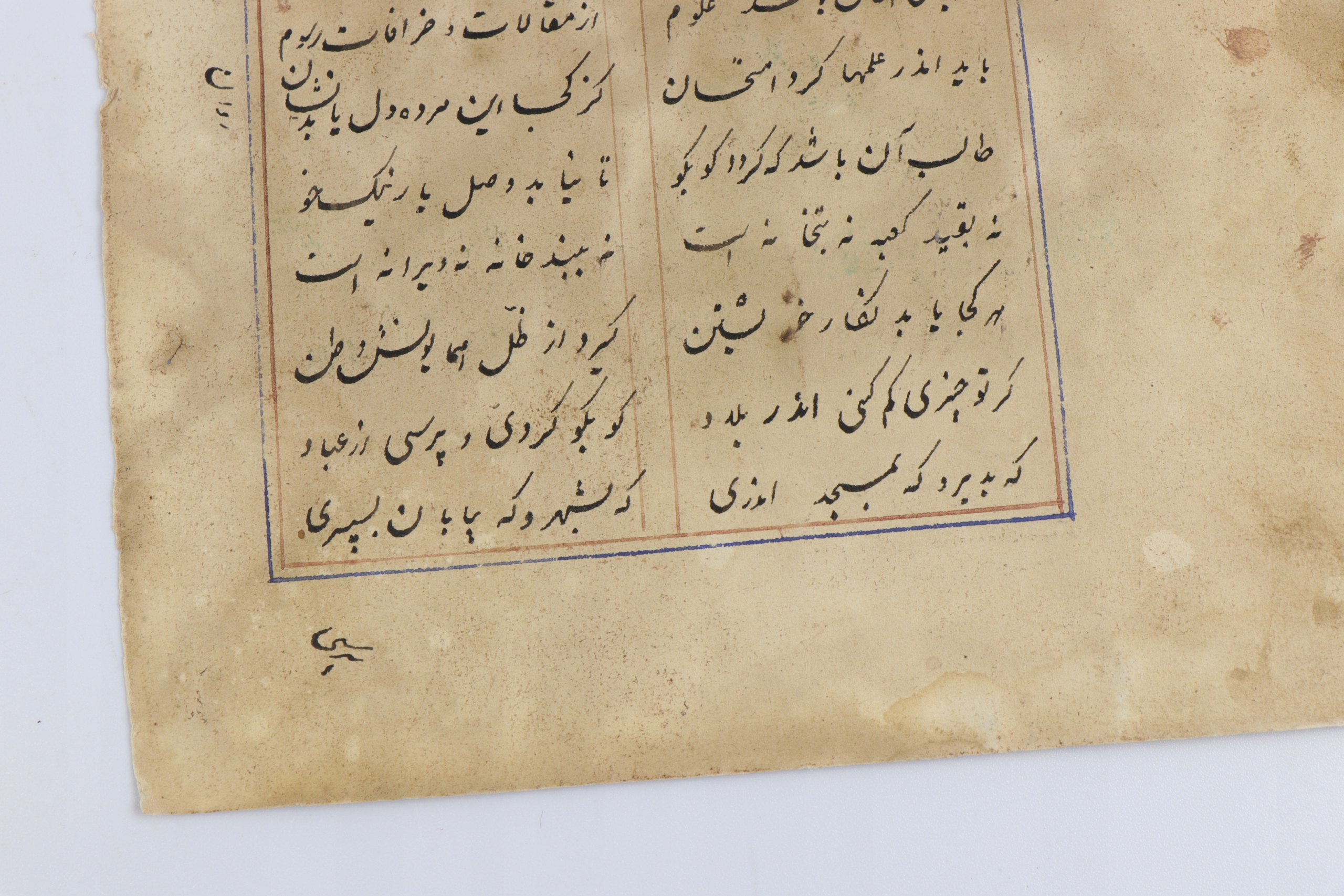 На реверсі – текст у дві колонки перською мовою шрифтом nastaʿlīq, написаний чорним чорнилом з маленькими діакритичними знаками червоного кольору. Текст походить з одного з найпопулярніших творів Саʿді з Ширазу, ймовірно, з поеми «Бустан» (Сад) або «Гулістан» (Трояндовий сад).