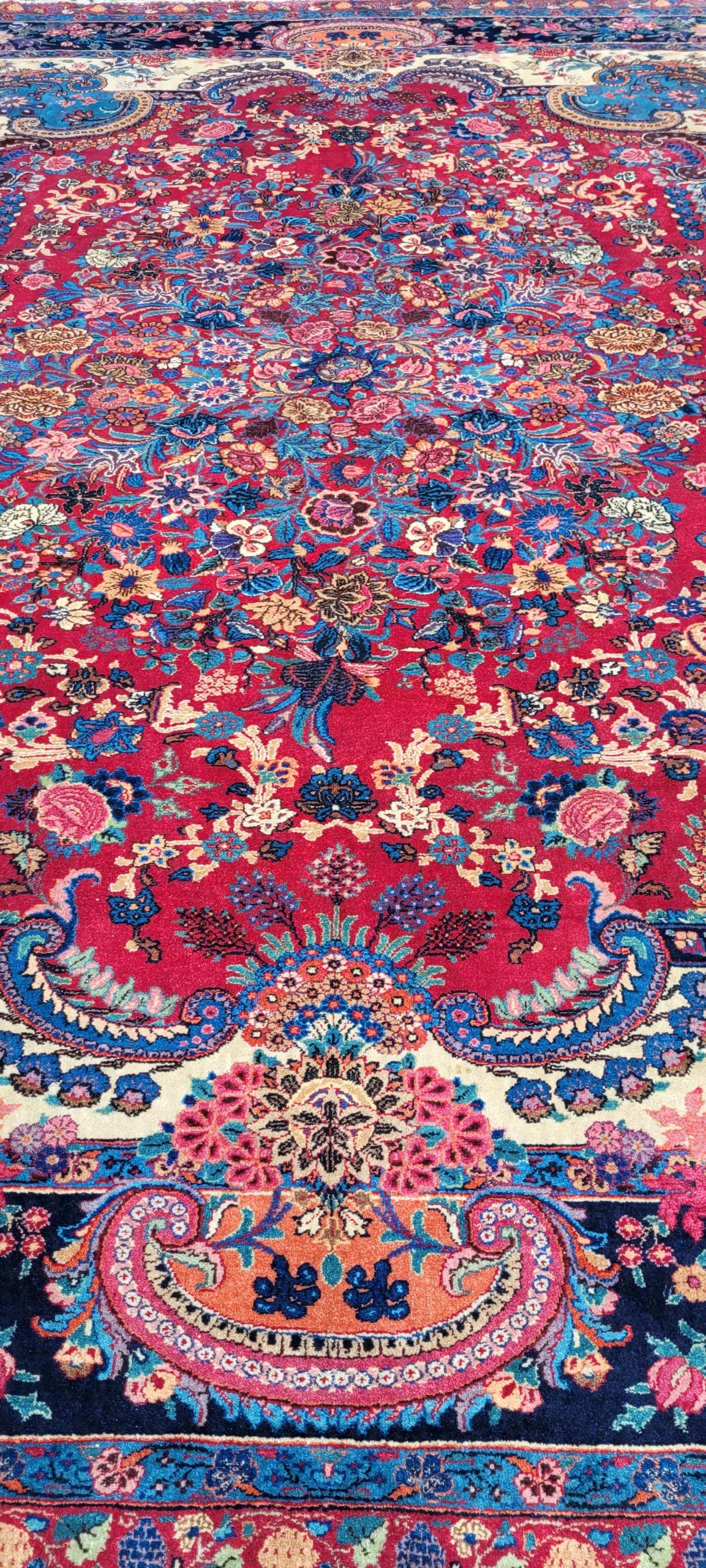 Перський антикварний сітчастий килим. Виткана вручну з вовни найвищої якості. Характеризується компактним, блискучим флісом, приємним на дотик і красивими кольорами. Надзвичайний унікальний виріб, ретельно витканий з багатим квітковим візерунком. Зберігся в хорошому стані. Має місця з дефектами на флісі.