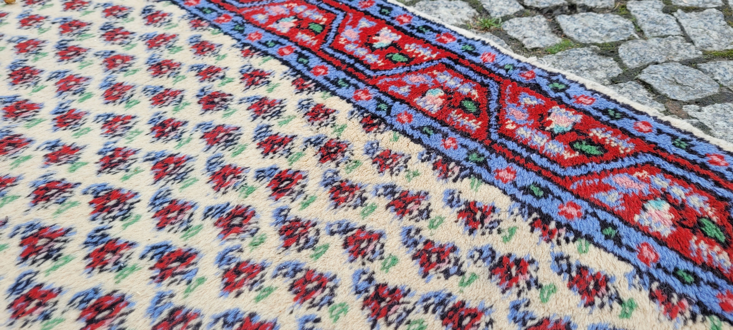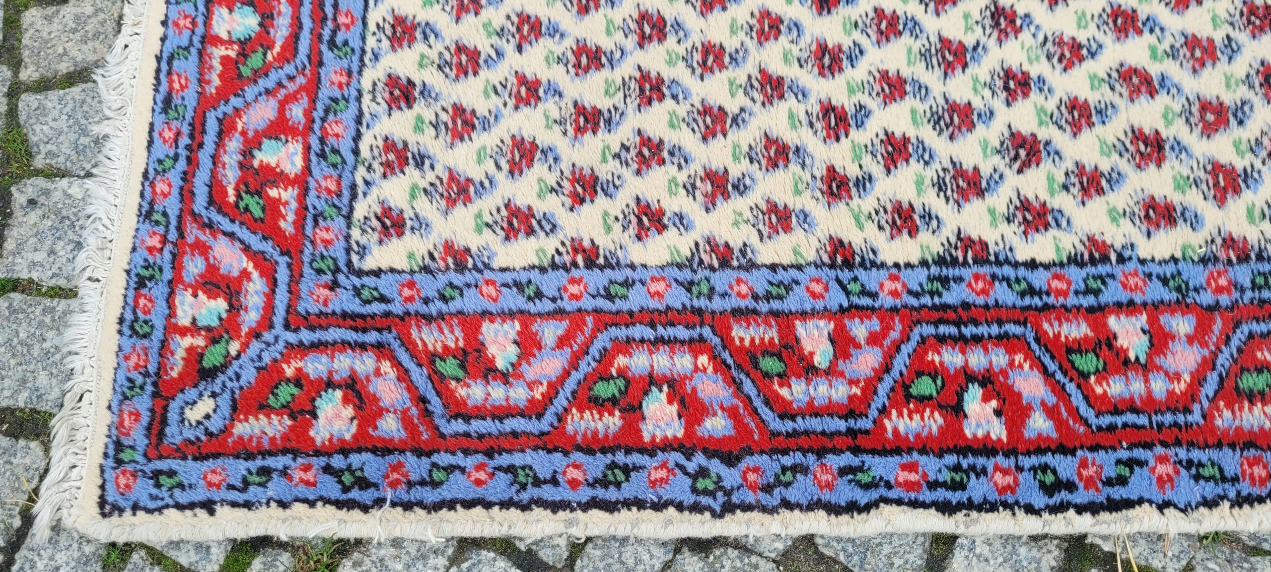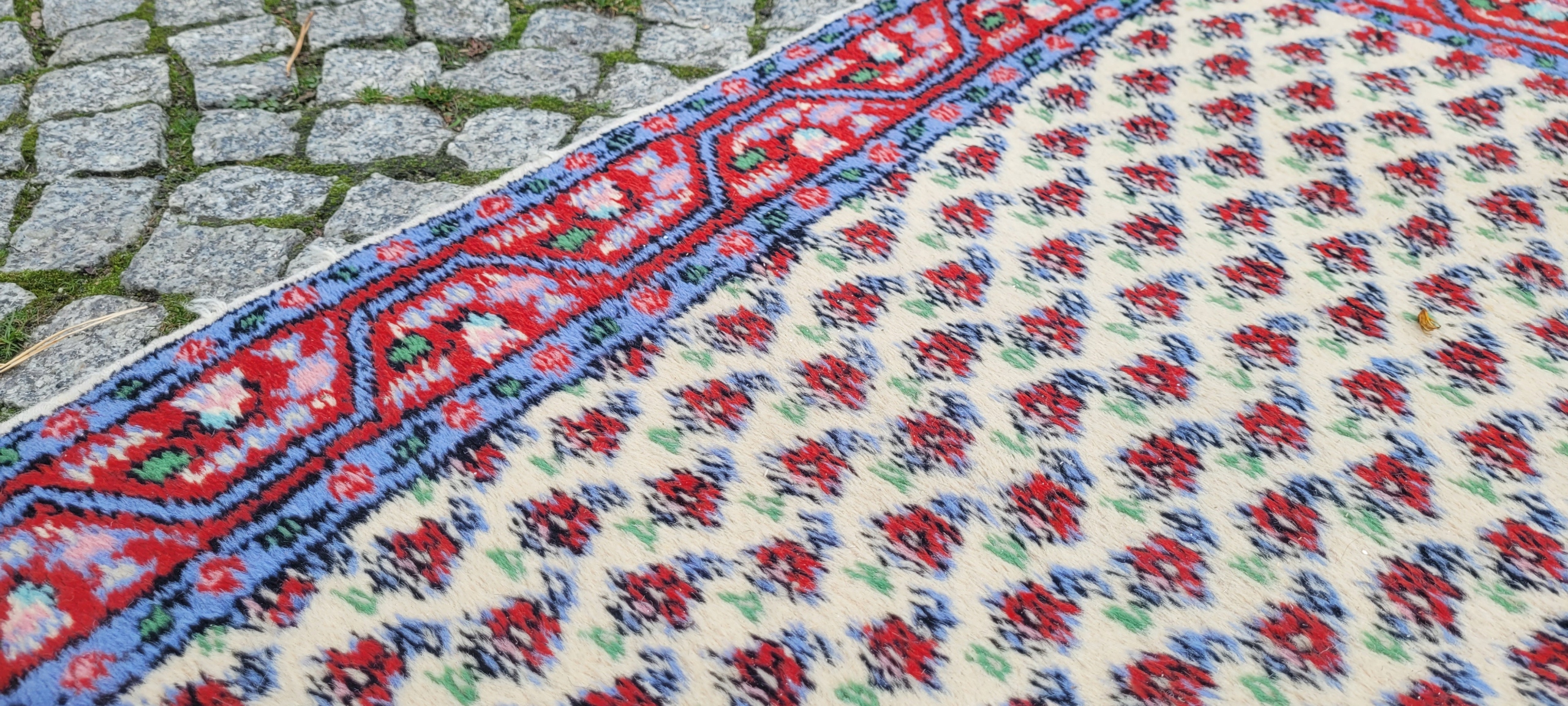 Чудовий килим Indo-Mir Saroug. Вручну виткана з вовни. Характеризується компактним, приємним на дотик флісом і красивими кольорами та візерунками. Він у хорошому стані.