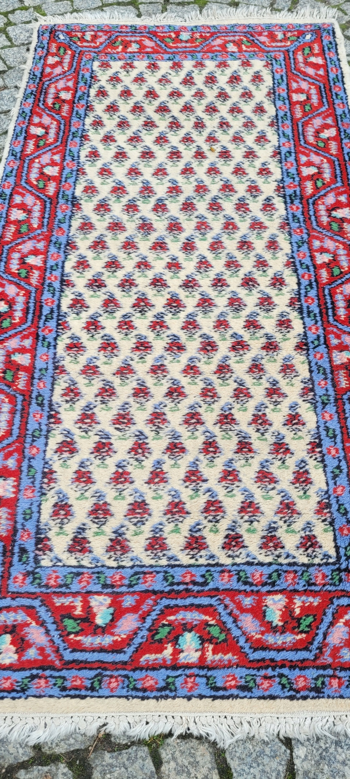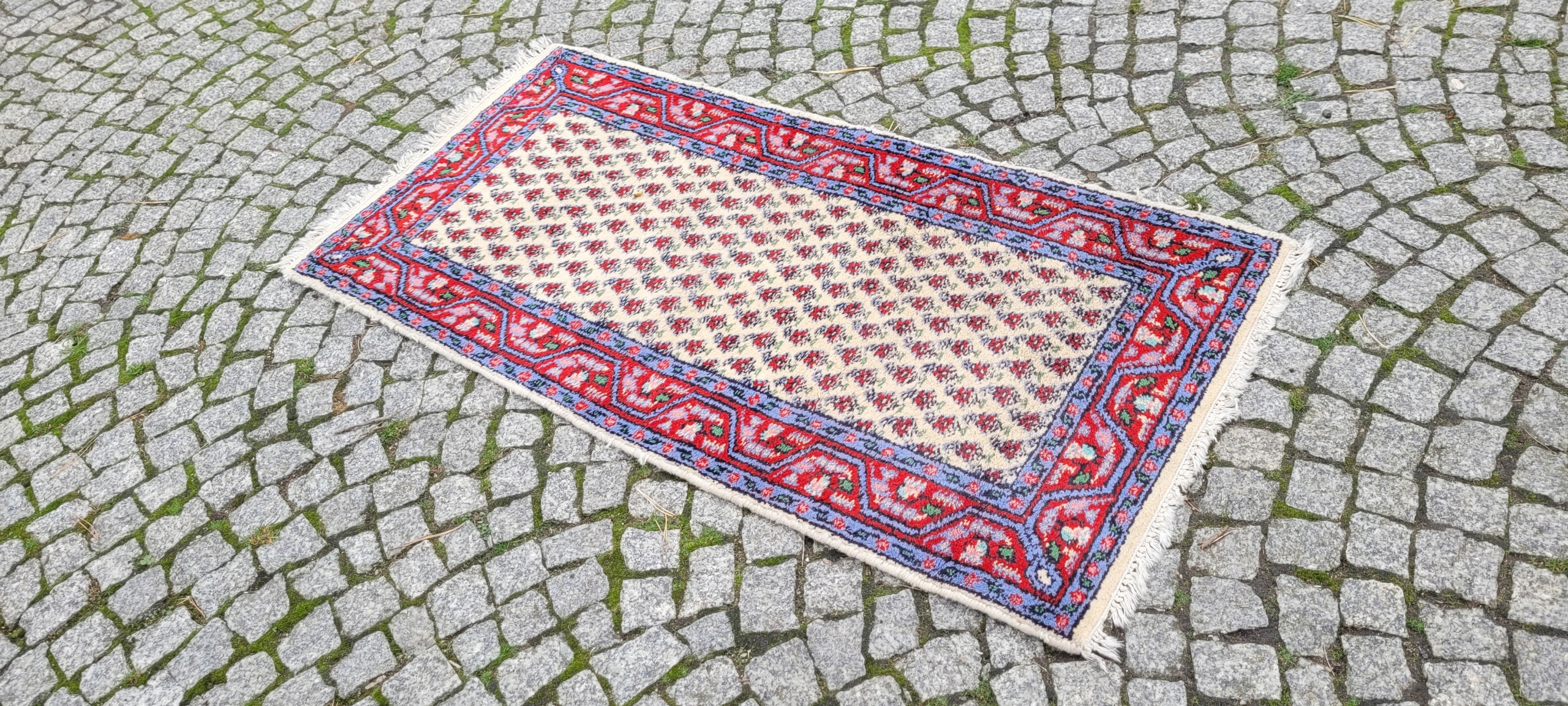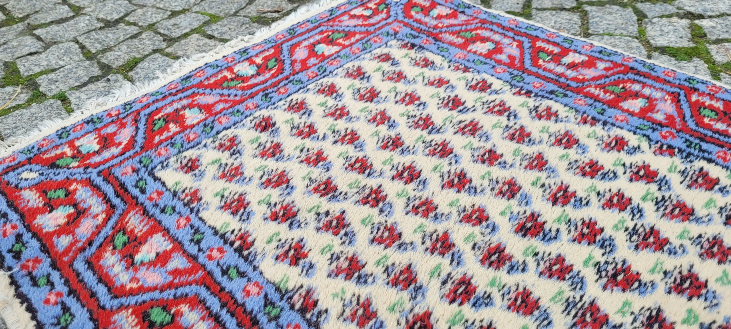 Чудовий килим Indo-Mir Saroug. Вручну виткана з вовни. Характеризується компактним, приємним на дотик флісом і красивими кольорами та візерунками. Він у хорошому стані.