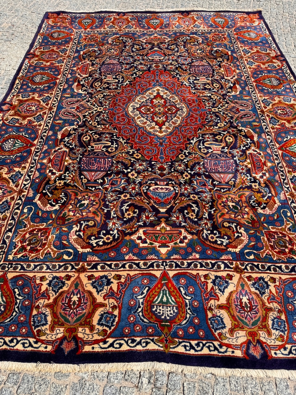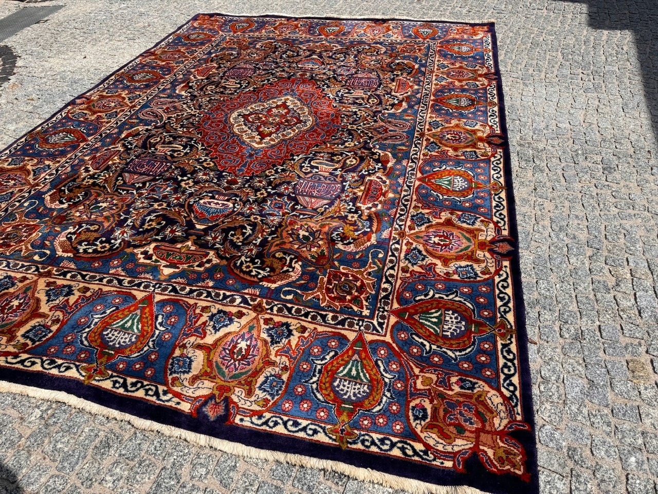 АРТИКУЛ: Оригінальний перський килим ручної роботи з провінції Кашмар. . Є бирка під килим + паперовий сертифікат під замовлення. У галереї до продажу він коштував 6500 євро, тобто близько 29 000 злотих. Він унікальний своїм дизайном. Це дуже якісний килим.