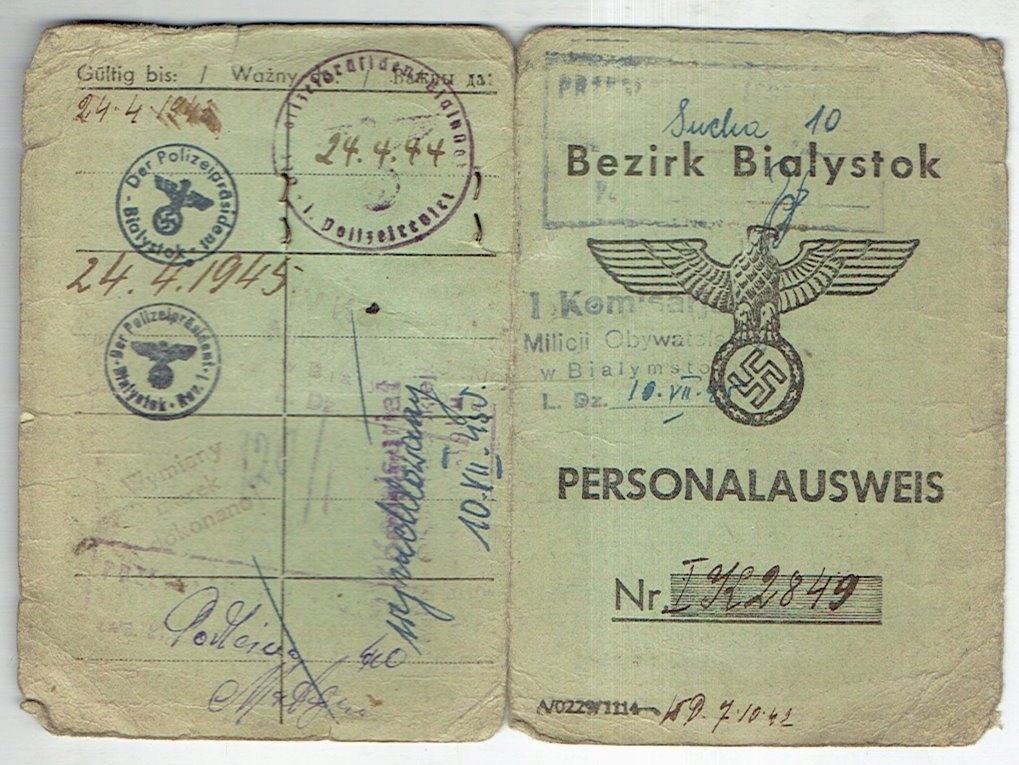 Personalausweis Bezirk Bialystok 1942-45