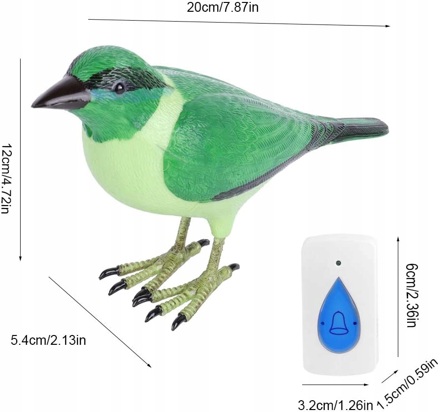 Високоякісний матеріал і гарне оздоблення. Використано якісний, міцний і довговічний матеріал. Усі покриття нетоксичні та екологічно чисті та ніколи не вицвітають. Яскравий колір і унікальний візерунок у формі пташки роблять його чудовим декором Дзвіночок для співу птахів Дзвіночок імітує чистий мелодійний і справжній спів птахів. Унікальний зовнішній дизайн, незгасаюче барвисте зображення музики з пташками створює відчуття природи Великий робочий діапазон Робочий діапазон до 3050 метрів на відкритому просторі забезпечує швидке чуття та відповідь на дверний дзвінок. Унікальна пташина музика, ви завжди будете легко поінформовані, коли хтось дзвонить ззовні, ніколи не хвилюйтеся про втрату гостей.Просте встановлення Легке та зручне встановлення. Кнопки дистанційного керування можна встановити за допомогою двосторонніх наклейок, які входять до комплекту. Швидка і проста збірка, зручна у використанні Гарантія 100 Ми обіцяємо кожному покупцеві 100 задоволених покупкою, якщо у вас виникнуть запитання щодо покупки. Ми надамо вам професійну та детальну відповідь протягом 24 годин. Натисніть, щоб купити зараз