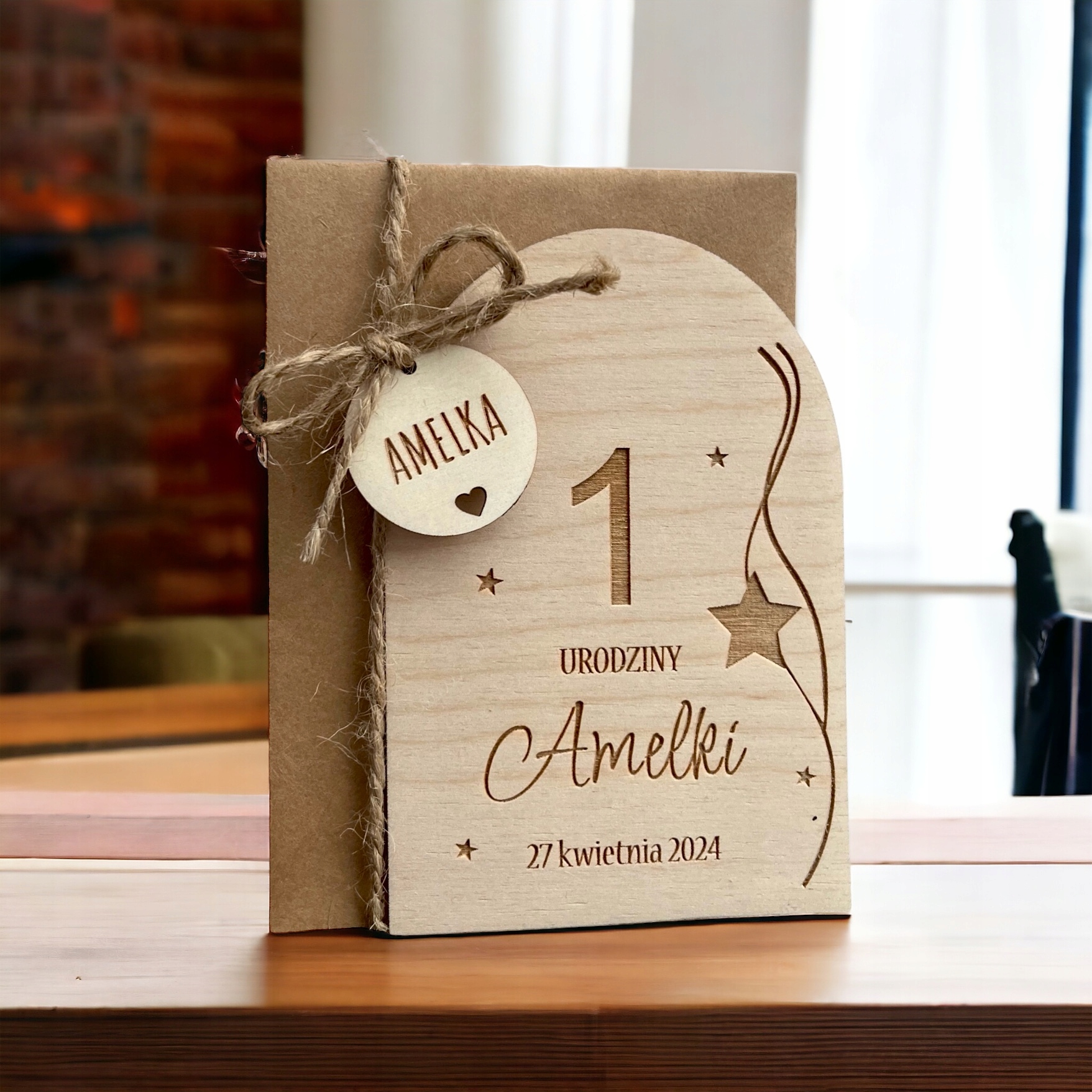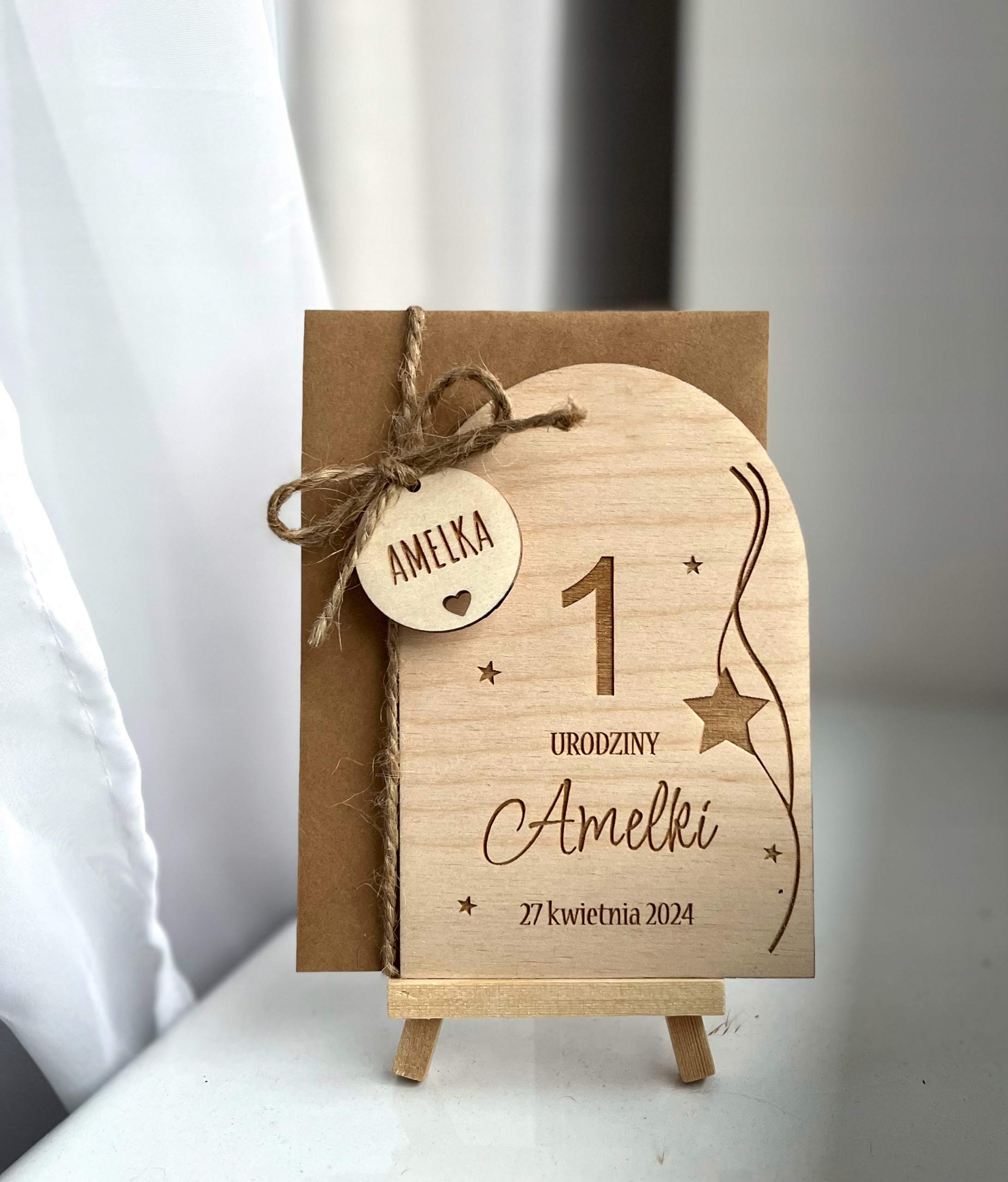 ПЕРСОНАЛІЗОВАНА ДЕРЕВ'ЯНА ВІТАЛКА НА ДЕНЬ НАРОДЖЕННЯ СУВЕНІРИ 1 РІК + БЕЗКОШТОВНО