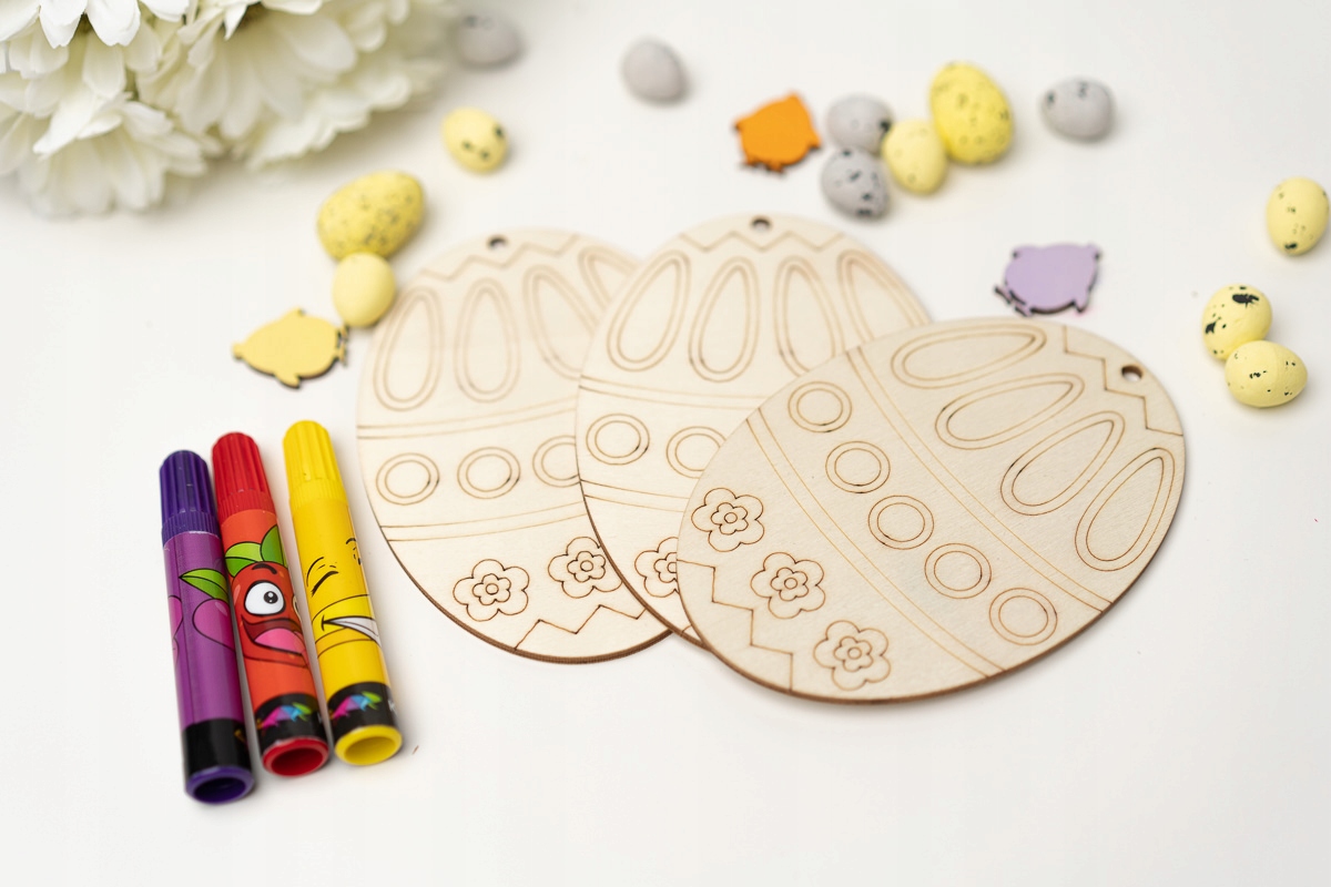 набір з 3 великих дерев’яних писанок і 3 маркерів.