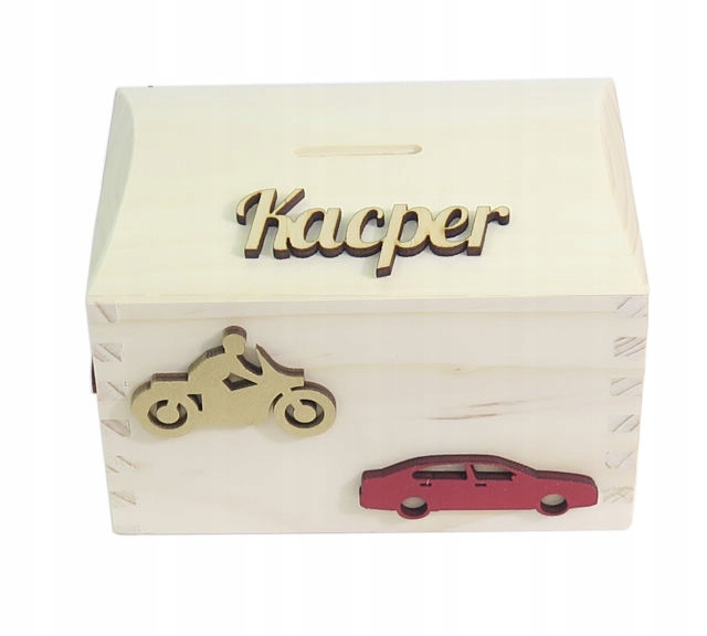 ПЕРСОНАЛІЗОВАНА дитяча скарбничка з ім'ям дитини - прикрашена машинками та мотоциклами золотого та червоного кольорів