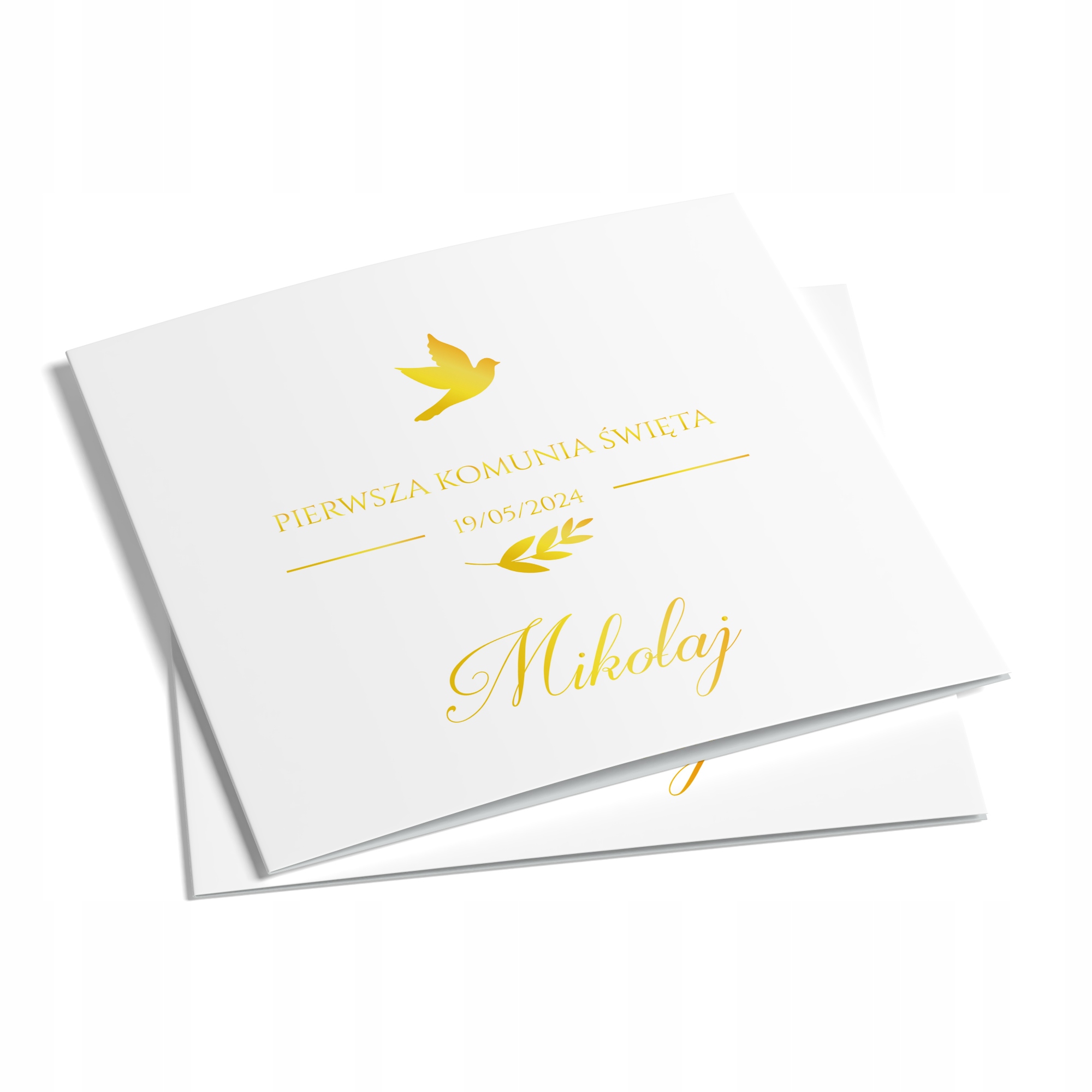 Запрошення причастя, зроблене з густого гладкого атласного паперу. Processed on professional printing machines, thanks to which the edges are perfectly even and the colors of the print are intense.