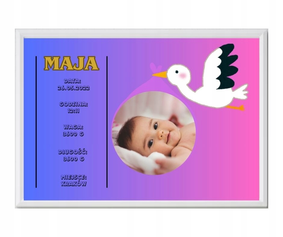 Кожен плакат повністю персоналізований! Це означає, що роздруківка буде надіслана фотографії та дані дитини .