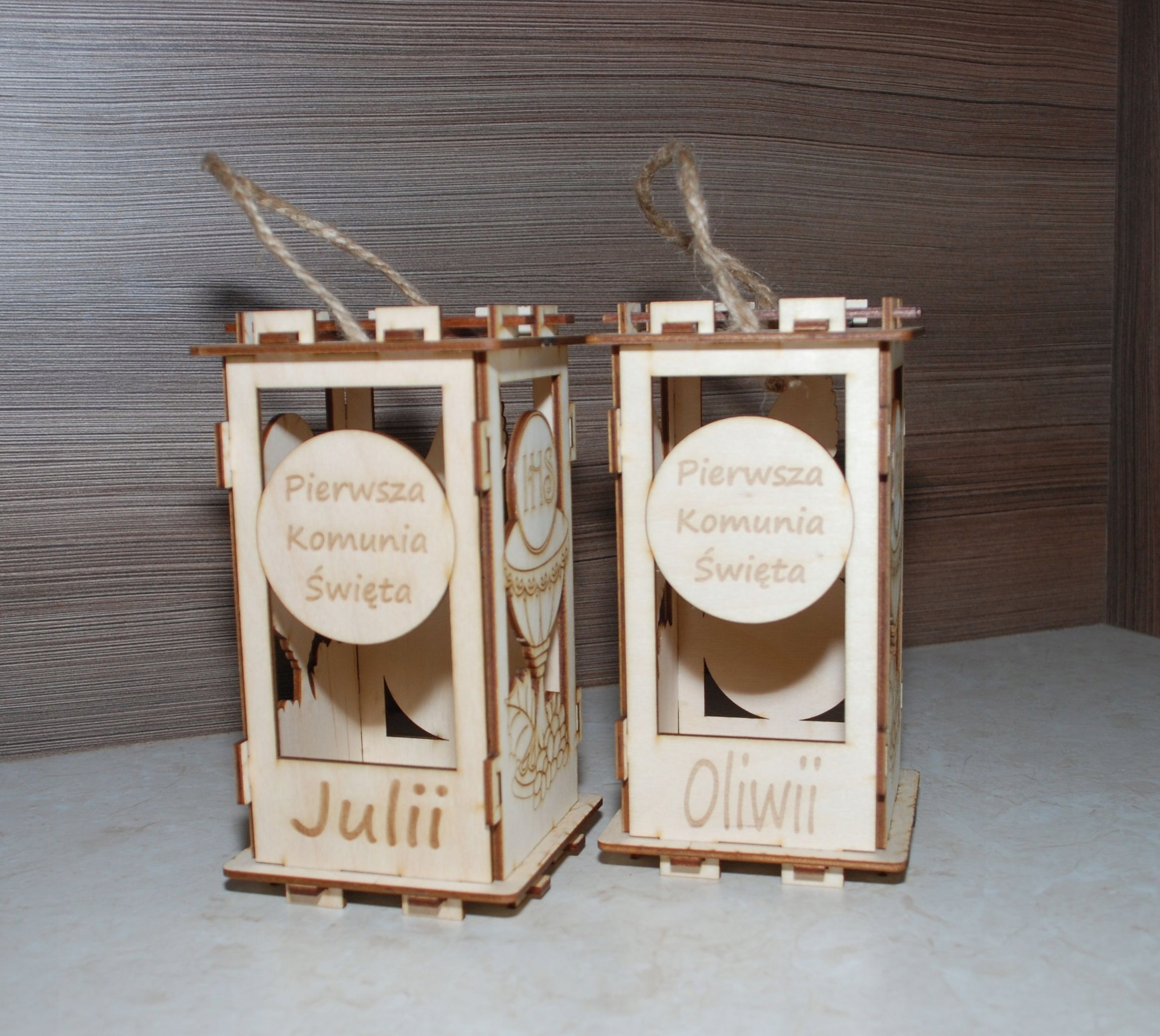 Дерев'яний ліхтар, висота приблизно 19 см, основа 10x10 см, персоналізований.